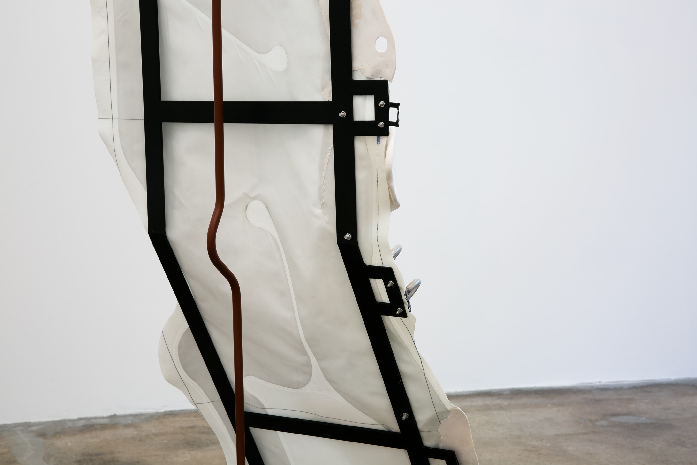 Carina Emery, Temporary Deviation (Airbag), 2020. Fabric, plastic, coated steel, stainless steel, jesmonite, pigment. Detail